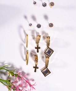 An 18-piece earring set that combines elegant studs, chic star details, and timeless hoops. Made of stainless steel with gold tone, durable and skin-friendly. A versatile set to match any outfit.