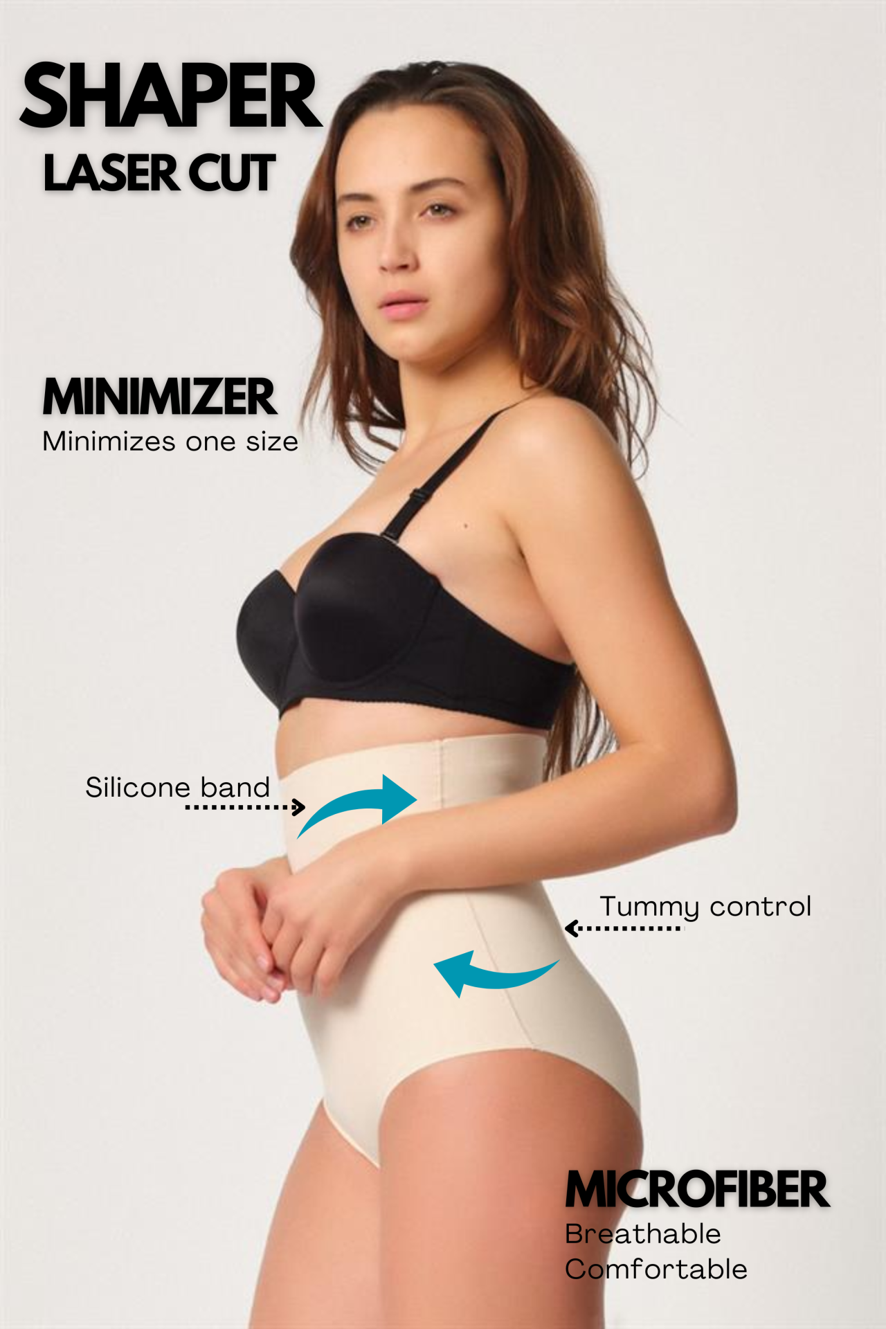 Laser cut shapewear. Shapes your tummy. %82 Microfiber Polyamide, %18 Elastane. Made in Türkiye.