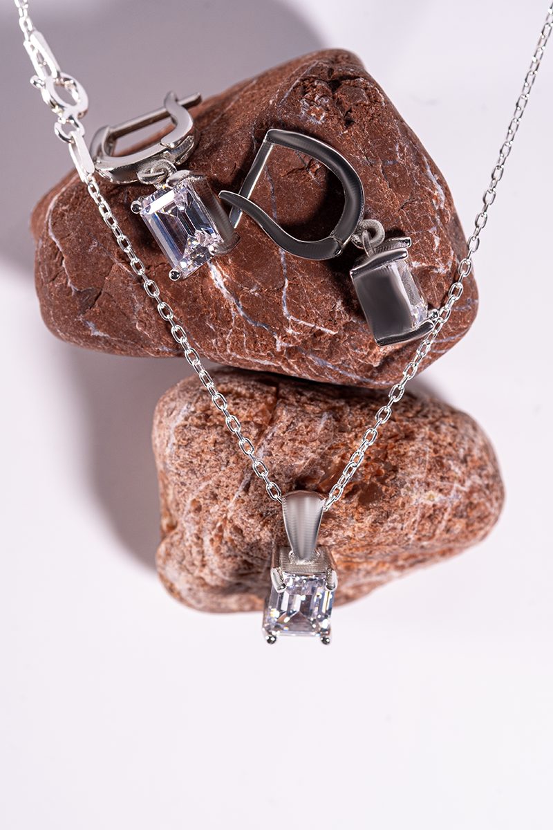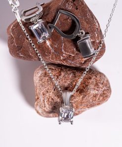 The Regina Jewelry Set blends strength and elegance with its striking rectangular-cut zircon stones. Handmade in Turkey from 925 sterling silver, this set consists of a 45 cm chain necklace and matching earrings. Each piece is designed with clean lines and a modern finish, making Regina the perfect choice for women who love classic yet powerful jewelry.