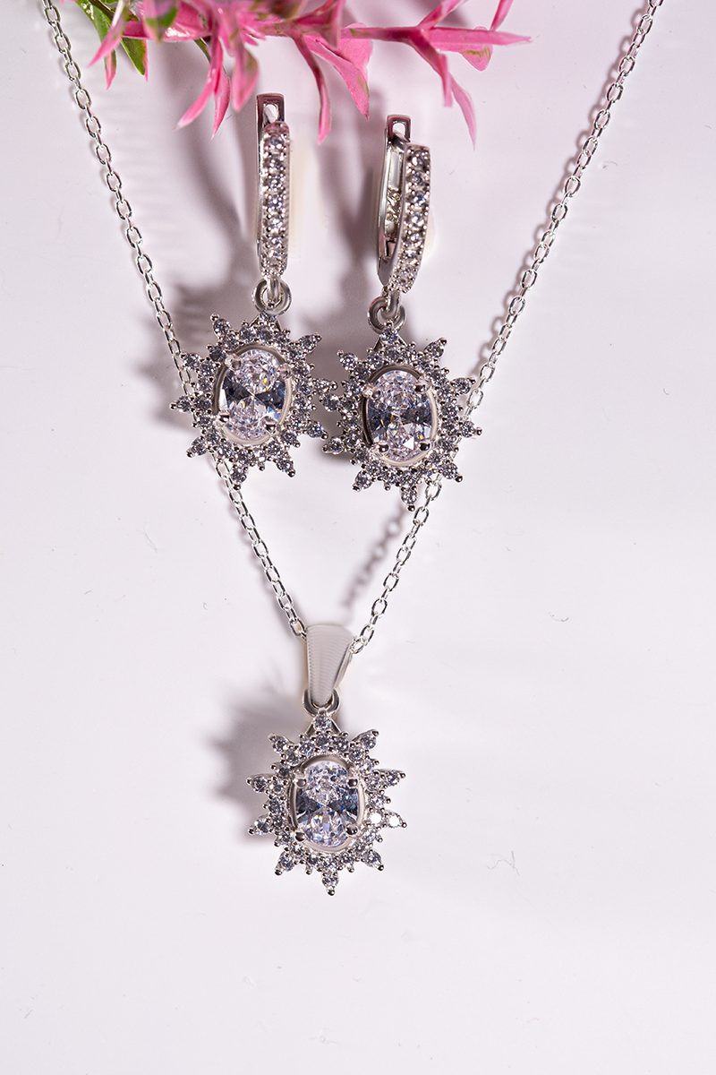 Shine bright with the Solara Set, a stunning handmade jewelry ensemble crafted from 925 sterling silver. Featuring sparkling zircon stones, this elegant necklace & earring set adds timeless glamour to every occasion.